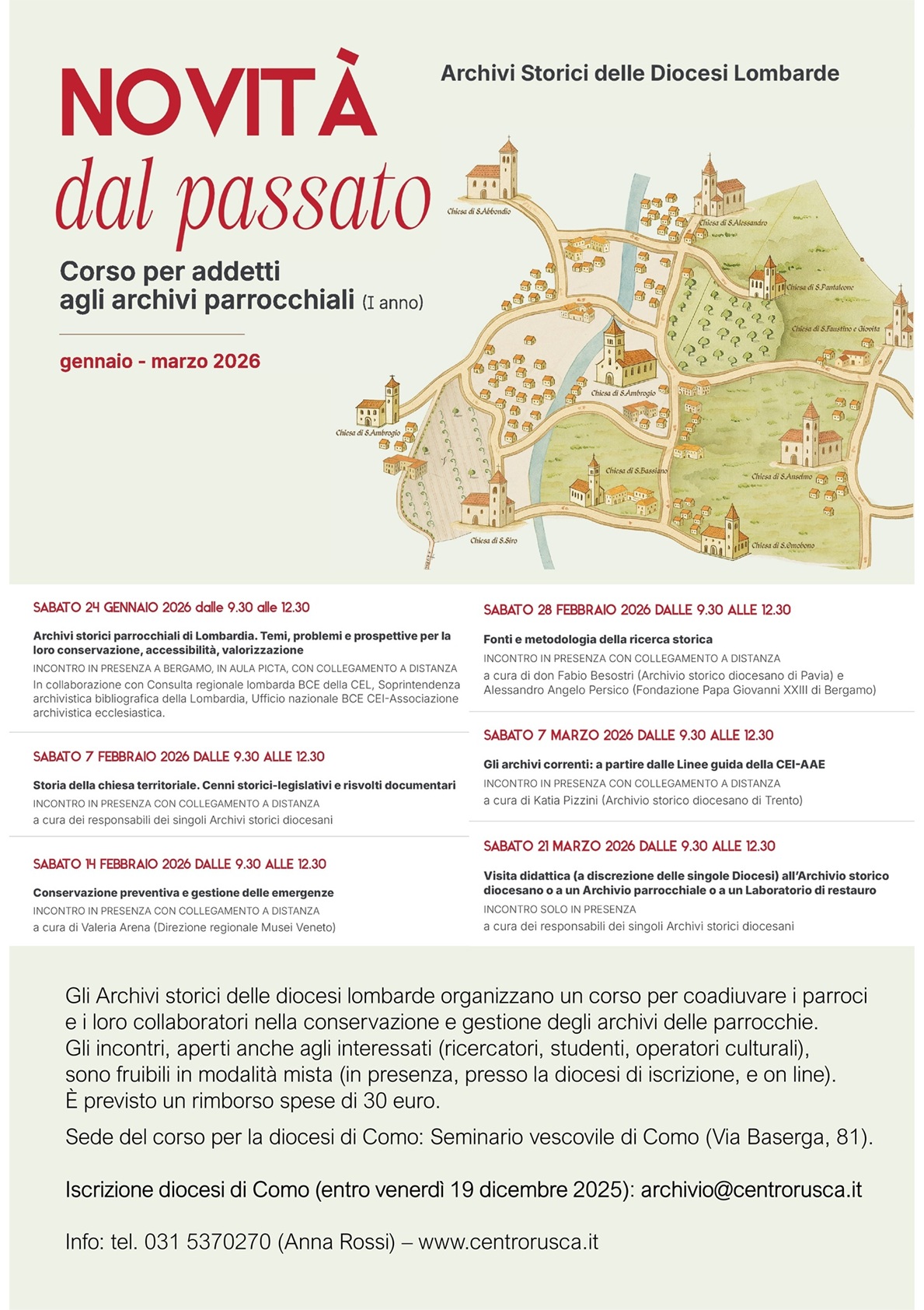 Si rinnova nel 2026 la proposta dell’Archivio storico della diocesi di Como, in collaborazione con gli Archivi diocesani di Lombardia,
